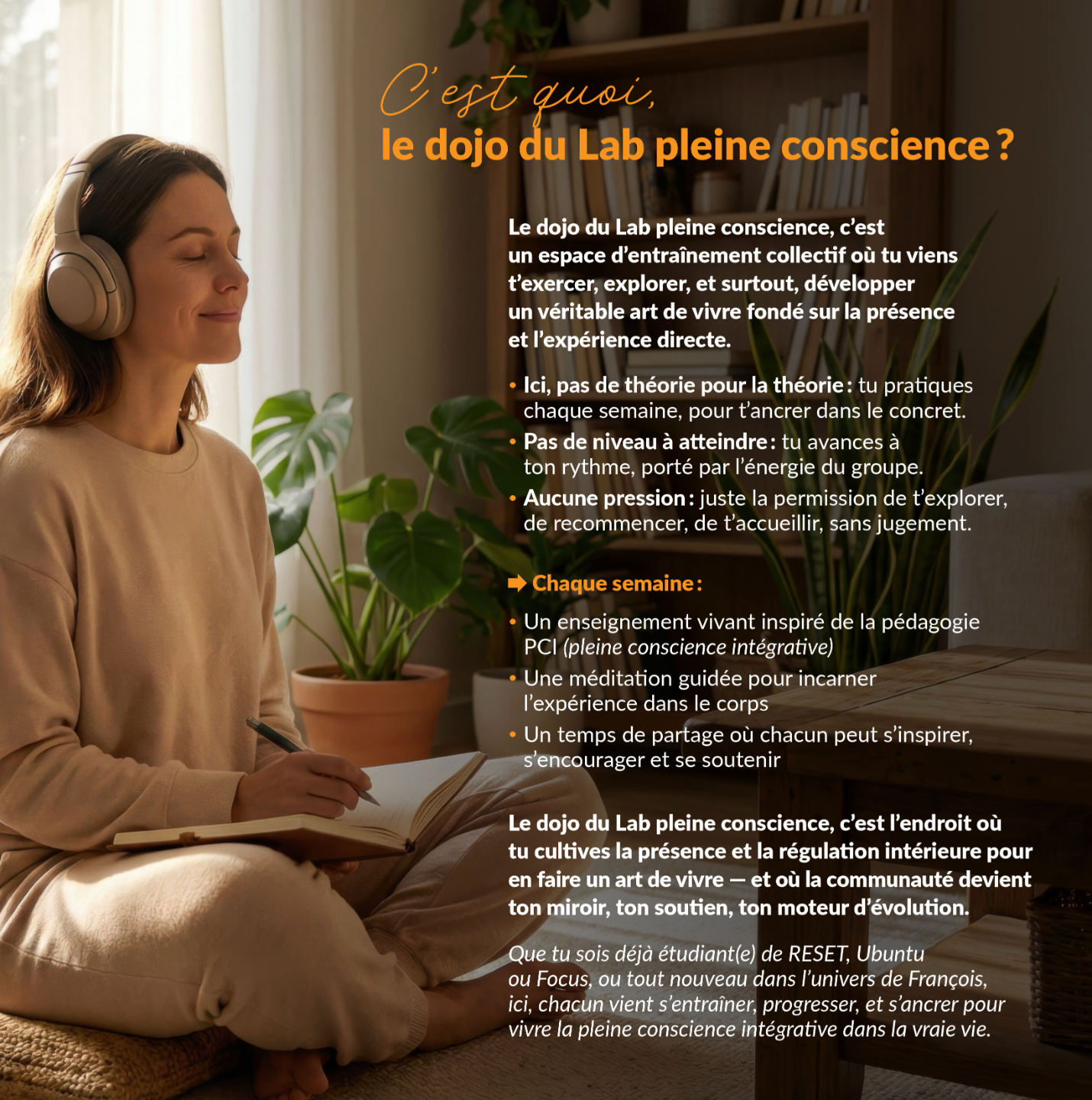 Est-ce obligatoire? Non, c’est 100% facultatif. Tout le contenu essentiel (rediffusions, liens, infos) est sur ton portail membre.